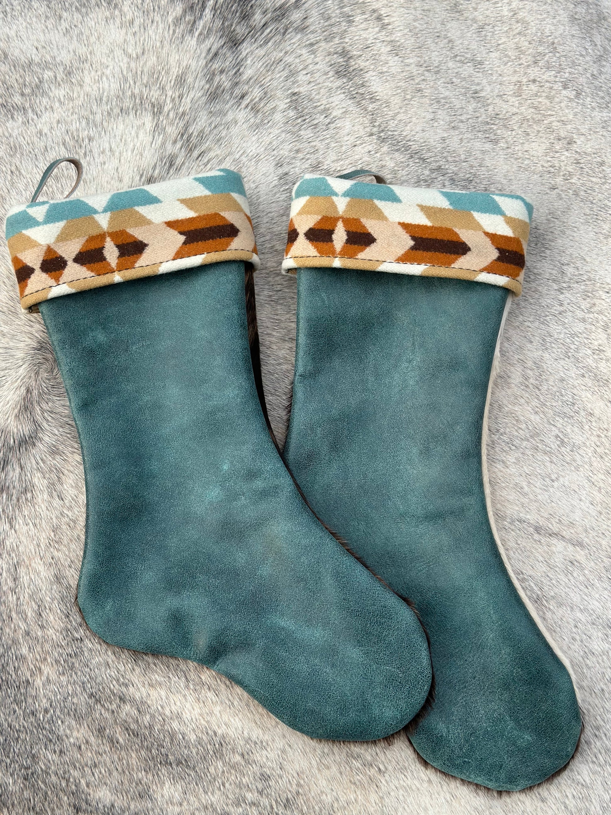 Crafted with a genuine hair-on-hide cowhide front and smooth leather back, this stocking features a Pendleton® fold-over top for a stylish finish. Measuring approximately 17” tall, it’s a unique piece designed to stand out wherever you hang it.
