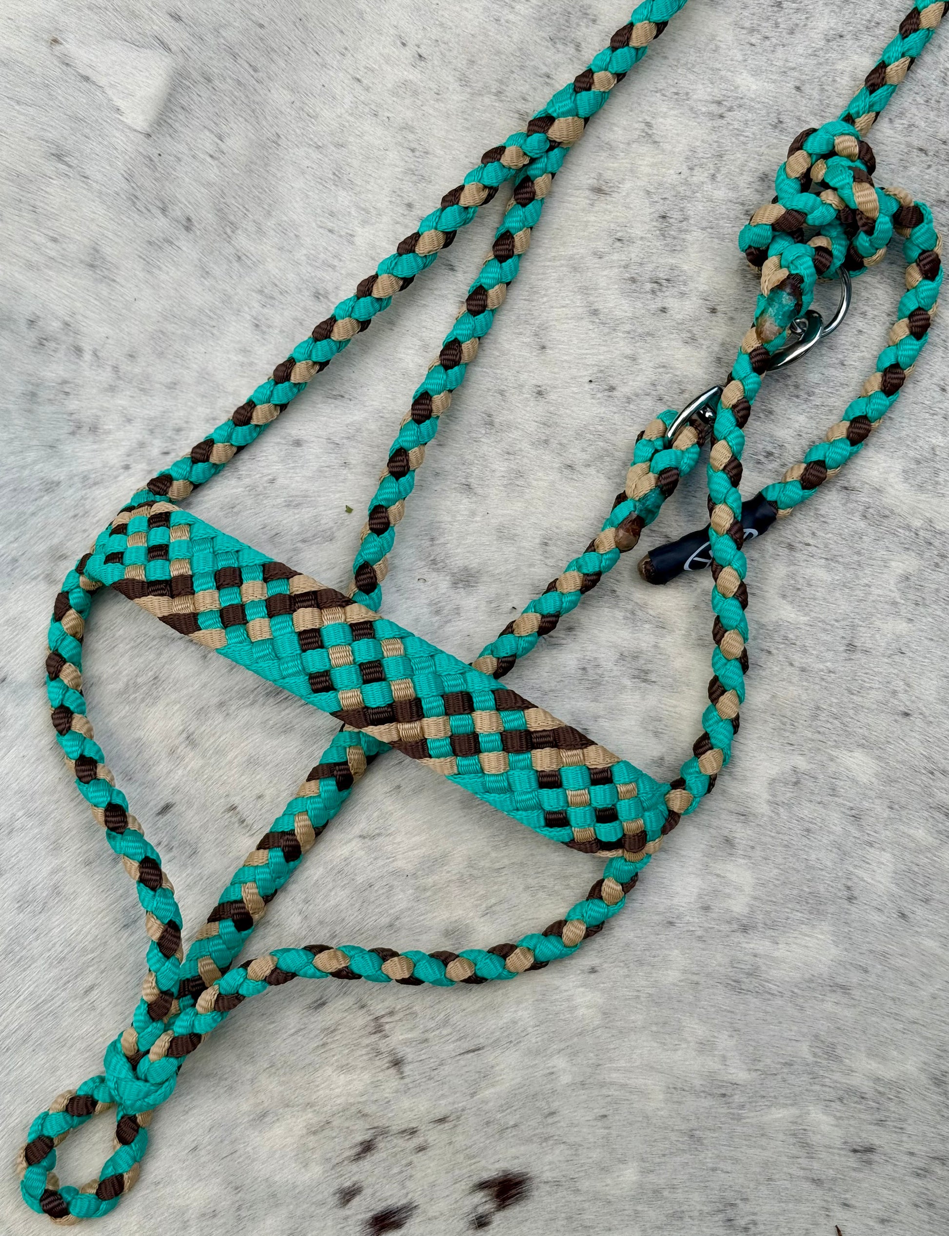 Braided mule tape halter with easy-on throat snap!