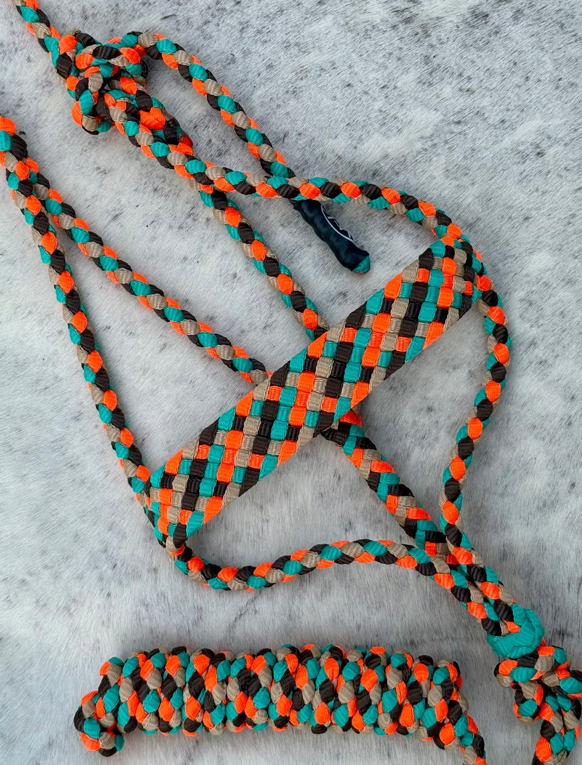 Hand-braided KnotsByK original Muletape Horse Halter - the perfect combination of strength and beauty. Made from durable, high-quality muletape, this halter is designed to withstand the toughest outdoor conditions while still looking stylish on your horse.