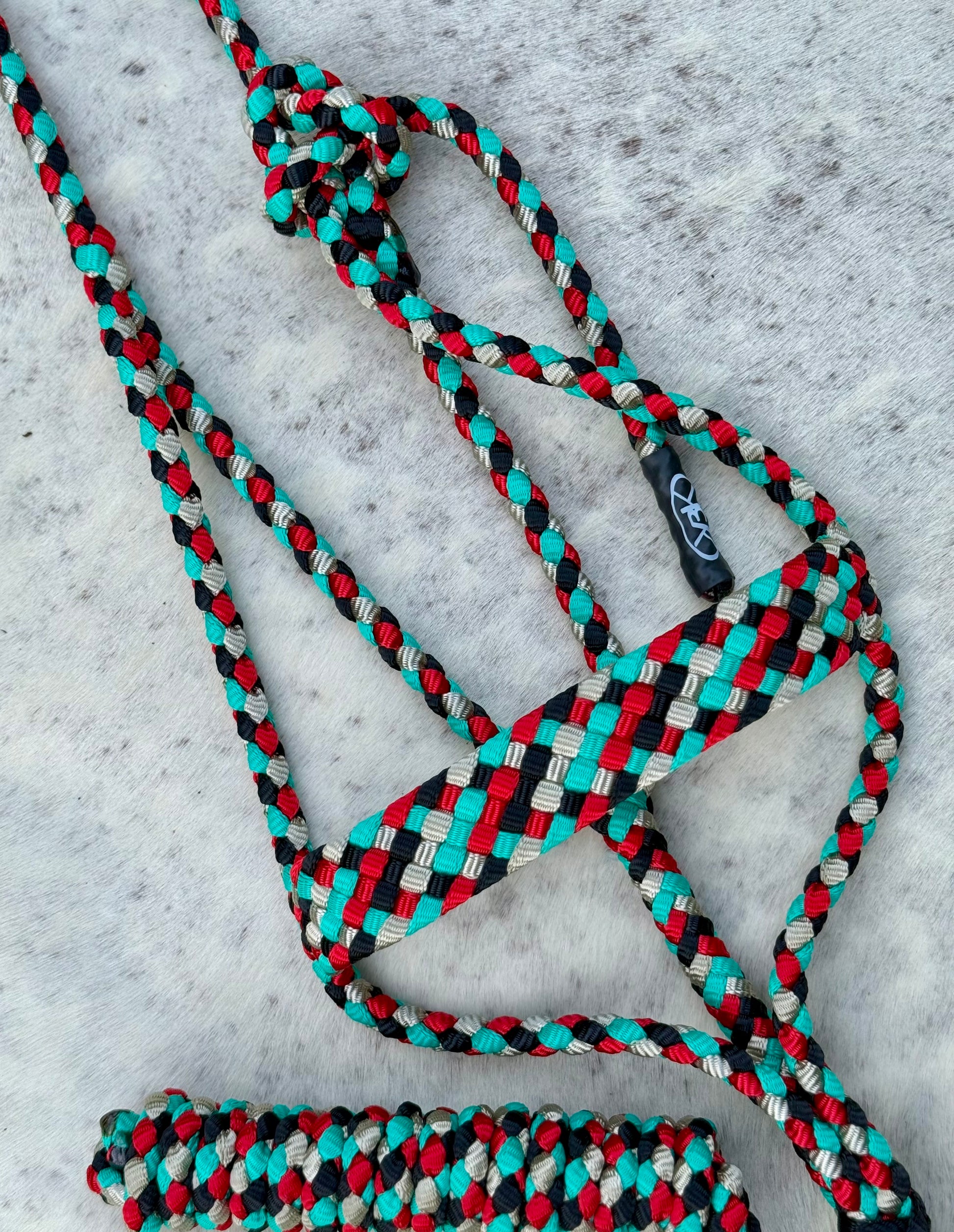 Hand-braided KnotsByK original Muletape Horse Halter - the perfect combination of strength and beauty. Made from durable, high-quality muletape, this halter is designed to withstand the toughest outdoor conditions while still looking stylish on your horse.