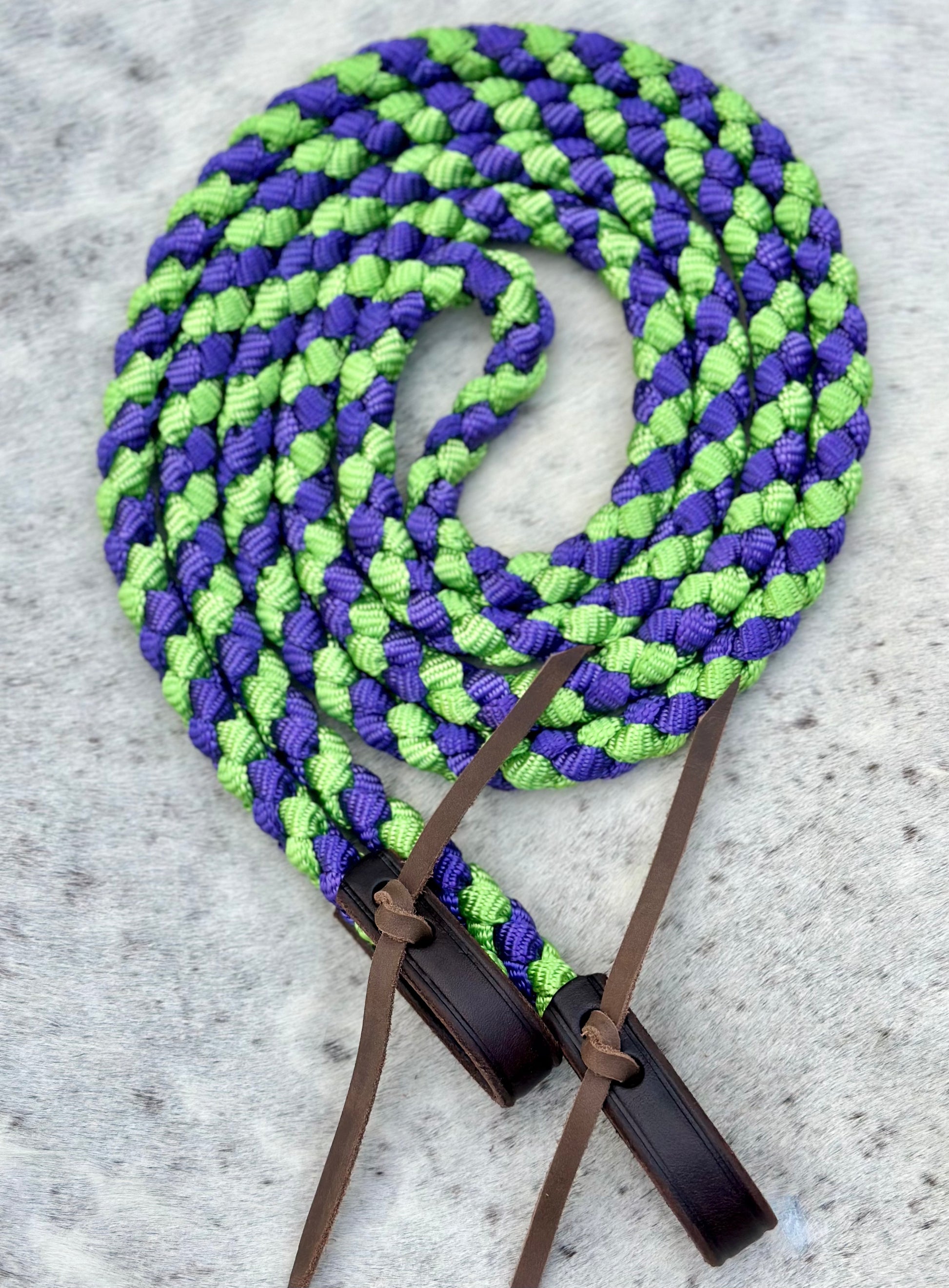 Hand braided muletape round reins.Approx 9/16” x 8’.