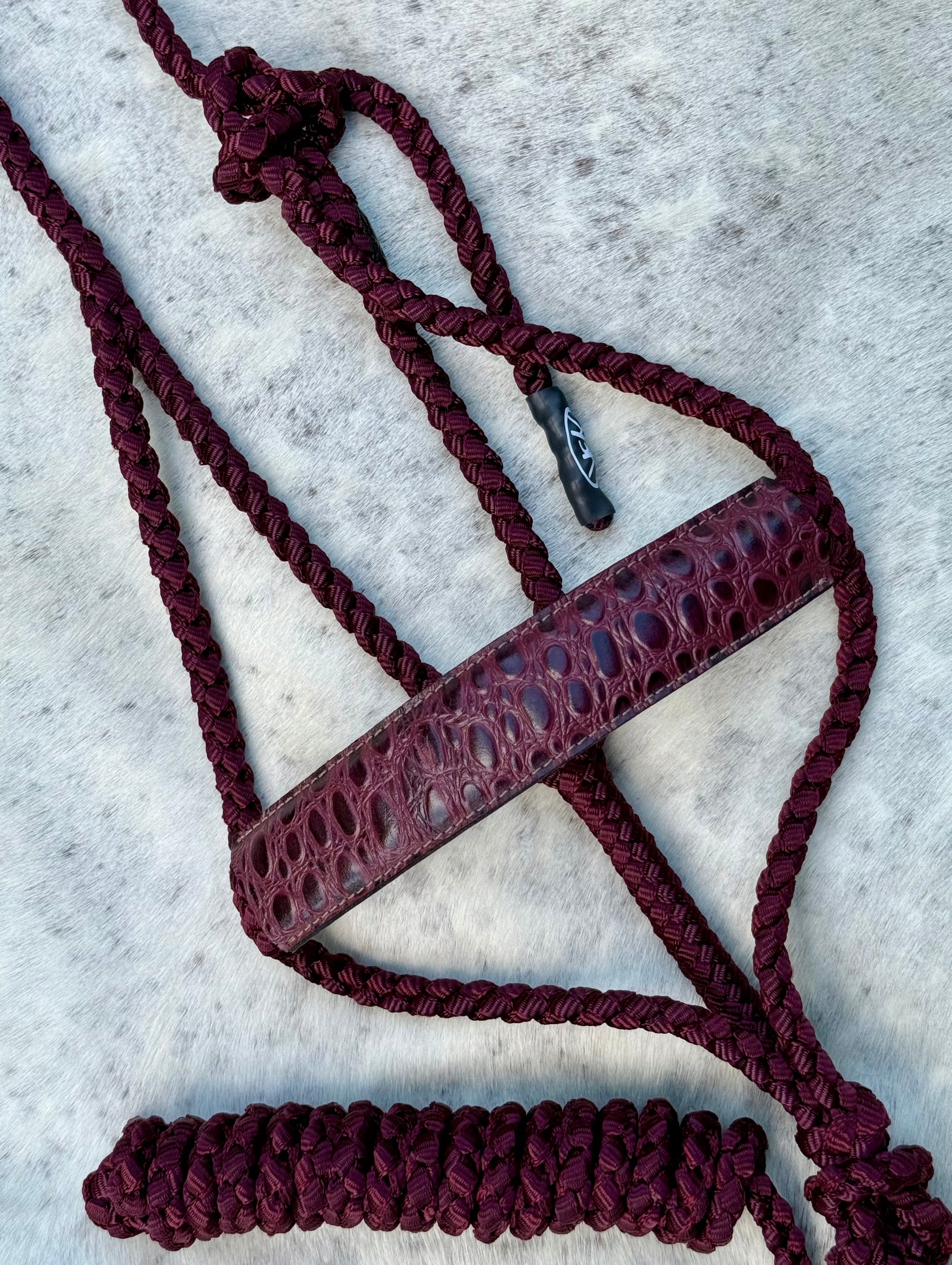 Hand-braided KnotsByK original Muletape Horse Halter and lead. Made from durable, high-quality muletape - with embossed leather noseband.