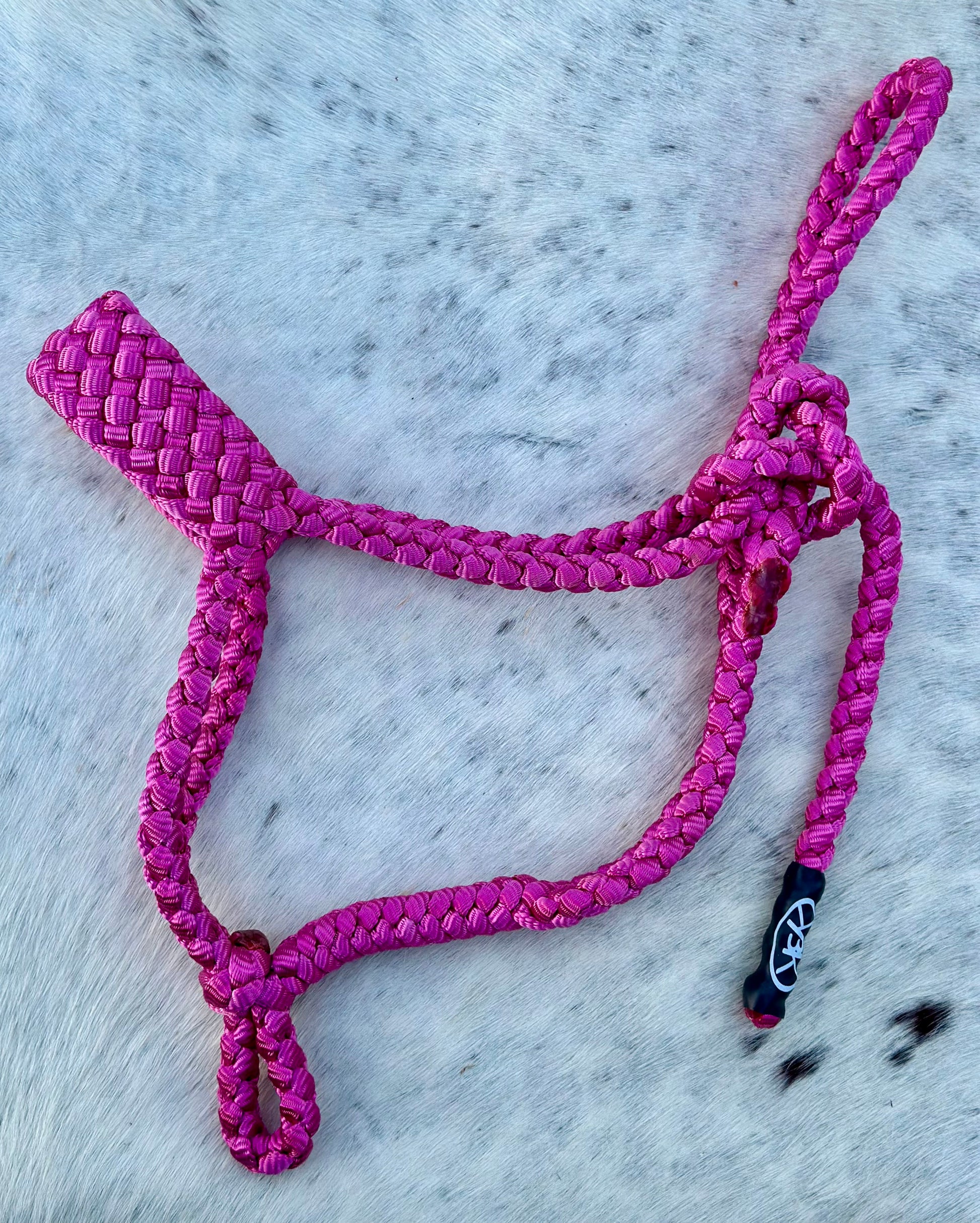 Hand-braided KnotsByK original Muletape pony Halter(only) - the perfect combination of strength and beauty. Made from durable, high-quality muletape, this halter is designed to withstand the toughest outdoor conditions while still looking stylish on your horse.