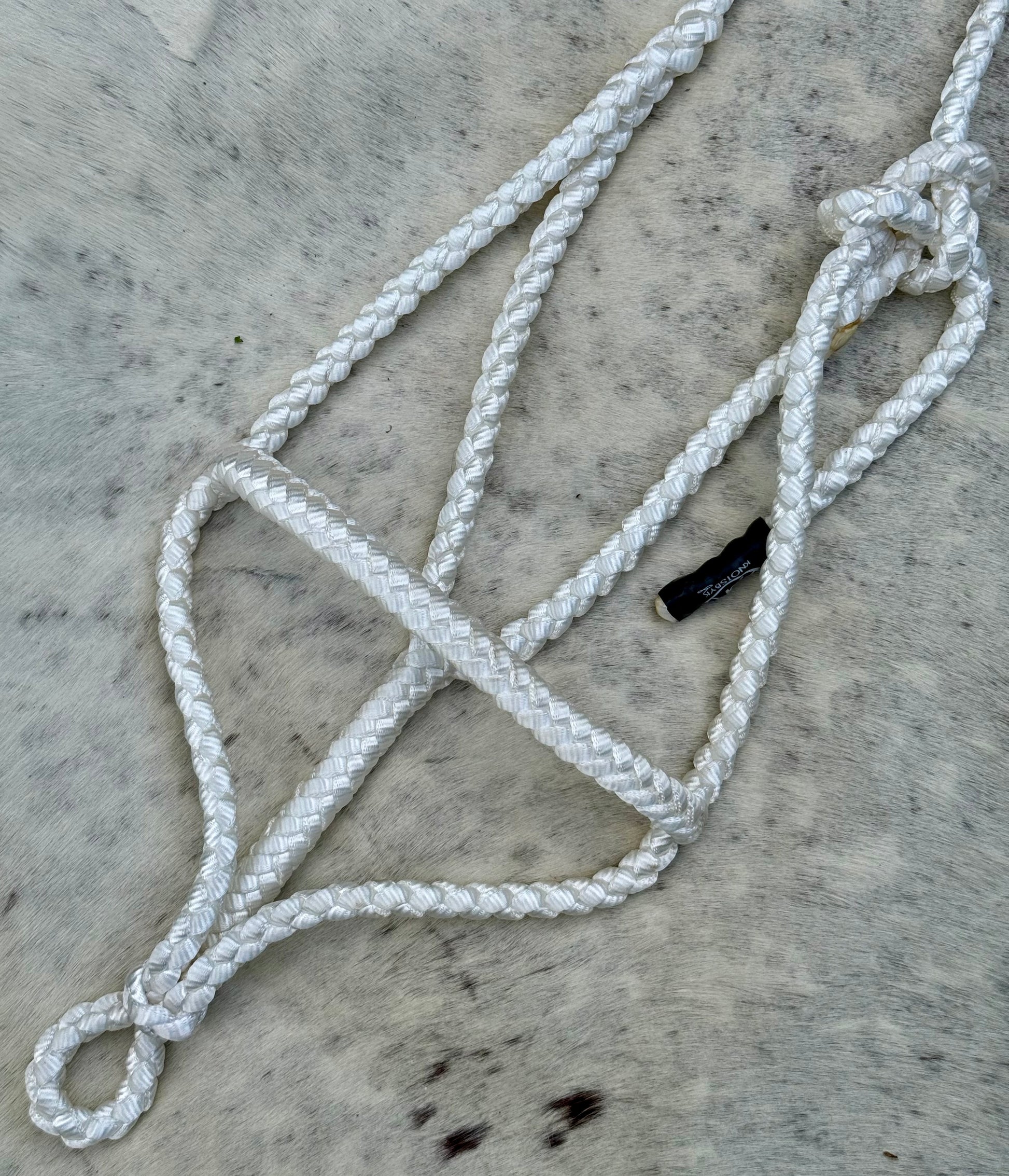 Hand-braided round nose KnotsByK original Muletape Horse Halter. Made from durable, high-quality muletape -